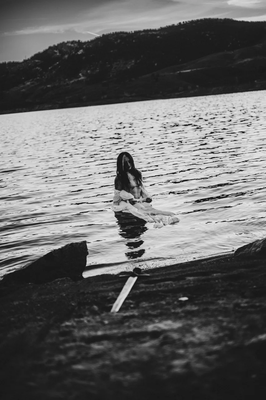 The water was calm, and the air was cold. As soon as her bare feet stepped from the filthy grass onto that soft sand her whole body quaked from her toes through the ends of her scorched dark hair.